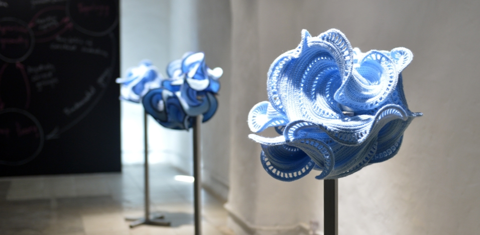 It needs to be added that for the entire period the exhibition is on show, on the 7th, 14th, 21st and 28th of October, Daina Taimiņa invites exhibition visitors to evenings of tea and crocheting at 5 p.m. And on the 11th of October, children are invited to an excursion into mathematics and hyperbolic planes. During the lecture, children will be offered to make their versions of hyperbolic planes of paper.