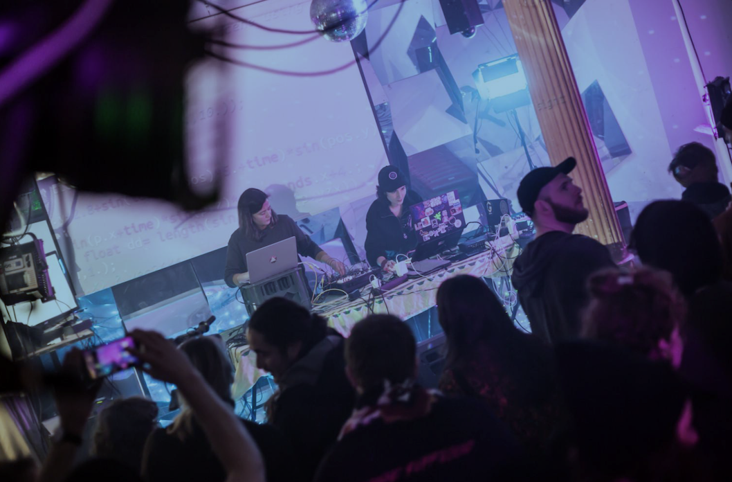 Creative programmers Lina Bautista and Sola Sarratea perform at the Algorev in Leipzig. Publicity image
