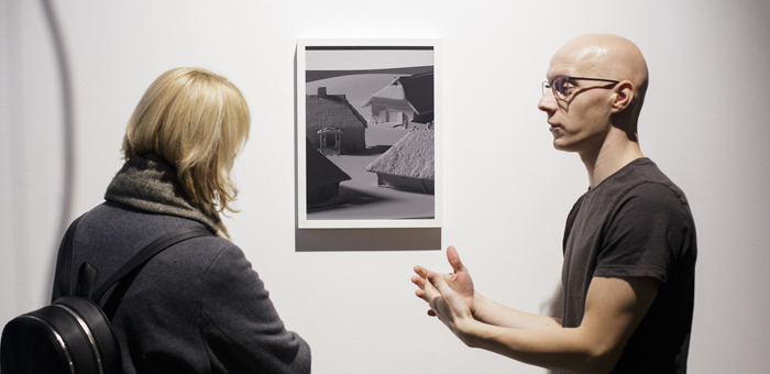 Foto no mākslinieka Alvja Misjuna izstādes “Viedais dārzs” atklāšana RIXC Galerijā. Foto: Kristīne Madjare