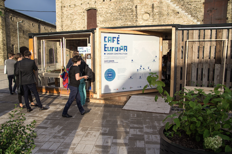 Café Europa projekta koncepcijas autors ir “Mons 2015” – Eiropas kultūras galvaspilsēta 2015. gadā. Monsa par savu tēmu ir izvēlējusies devīzi “vieta, kur kultūra sastopas ar tehnoloģijām” un Café Europa kalpo par šādas tikšanās vietas paraugu. Galvenais Café Europa nolūks ir tuvināt cilvēkiem jaunās tehnoloģijas, iepazīstināt ar tām un padarīt tās pieejamas ikvienam. Šī iemesla dēļ Café Europa ietver atsauci uz vēsturisko ideju par kafejnīcu, kas jau gadsimitiem kalpojusi par atvērtu sabiedrisku vietu, kur cilvēkiem tikties, uzzināt jaunumus, pat, iespējams, iegūt jaunas zināšanas un gūt iedvesmu savstarēpjā. Café Europa tiecas apvienot šo tradicionālās kafejnīcas sabiedrisko pusi ar jauno tehnoloģiju radošo potenciālu. Café Europa ir multifunkcionāla, arhitektoniski elastīga, mobila telpa, kas pielāgojama vietējam kontekstam, vienlaikus veidojot saikni ar citām līdzīga rakstura vietām citās Eiropas pilsētās.