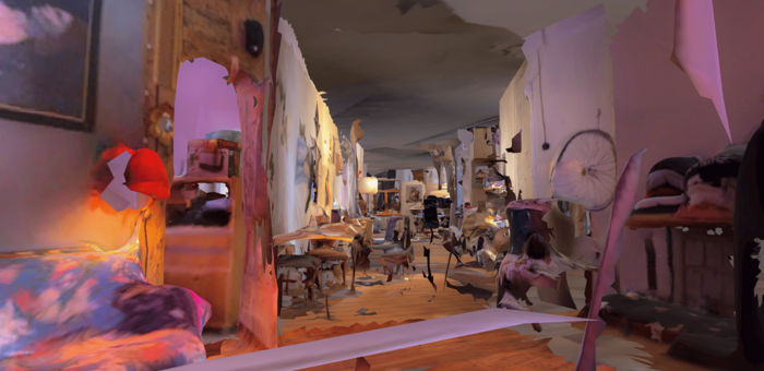Mākslas darbā izmantotas ar LIDAR ieskenētas privātās telpas, kuras sadalītas pa detaļām un pārkompozētas jaunā struktūrā, attēlojot hibrīdrealitāti, kurā jau dzīvojam un cilvēka mentālo telpu, kas pārsātināta ar visdažādāko informāciju no ikdienas dzīves.