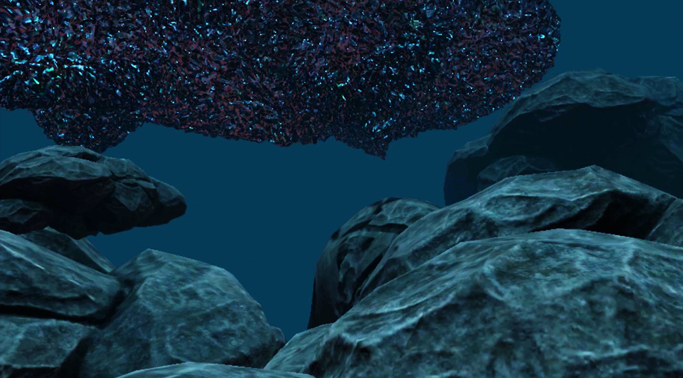 Virtuālās realitātes mākslas darbā “SYNK IN” Ieva Vīksne izmanto biometriskos datus mākslas kontekstā – smadzeņu viļņus lasošās ierīce tiek izmantota kā interfeiss, kas ļauj skatītājam navigēt mākslinieces radītajās virtuālājās telpās. Izmantojot savus smadzeņu impulsus, skatītajam būs iespēja “iegremdēties” gan virtuālajā ūdenī, gan prāta dzīlēs. Pieredzot šķietamu kontroli pār notiekošo procesu, būs dota iespēja izmēģināt, cik veiksmīgi skatītājs spēj kontrolēt sava prāta plūdumu.