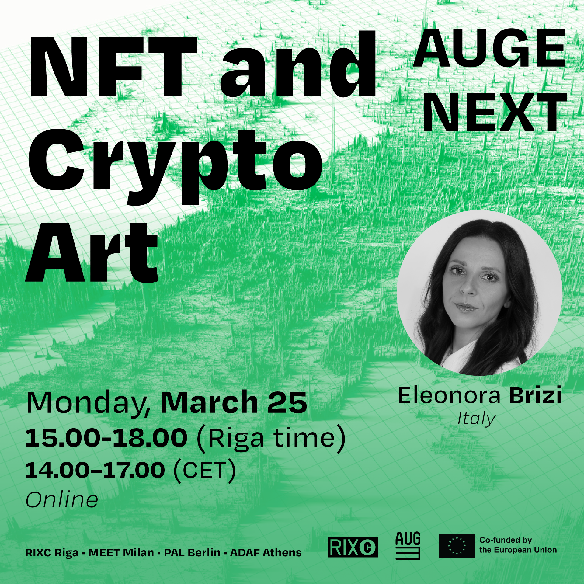 Pievienojieties NFT vebināram (Auge2nd), kurā ar NFT un kripto mākslu iepazīstinās vieslektore Eleonora Brizi (Itālija), 25. martā plkst. 15:00-18:00 (pēc Rīgas laika)! Piesakieties ŠEIT: